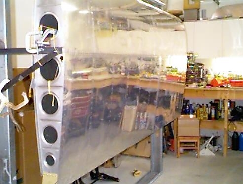 Finished riveting the top skin on the left wing. Also riveted on the left aileron gap seal. Removed the left wing from the jig and put it bac into the shipping crate. Place the right wing onto the jig.