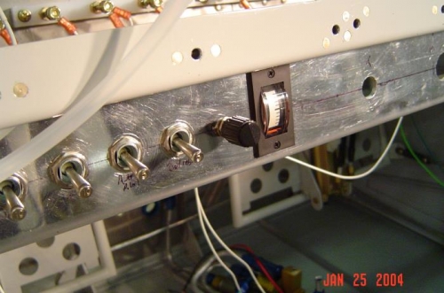 Continued wiring. Ran wires in the wings and connected them to the main harness. Installed the dimmer switch in the panel and relay to the rear of the sub-panel.