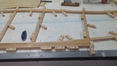 finished putting the vertical braces in the first side of the fuselage