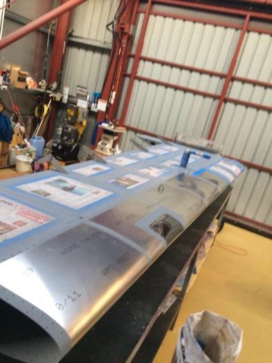 Remove masking after priming lower skin rivets.