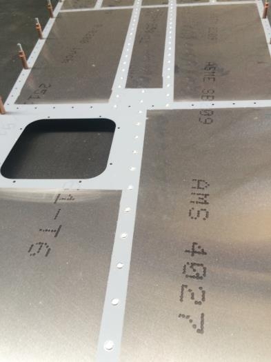 Filled rivets on aft fuselage lower skin.