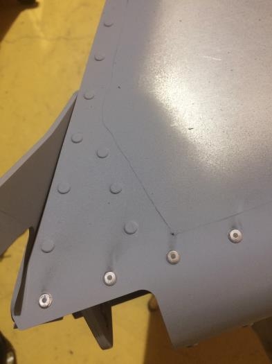 Prepare and prime rudder rivets.