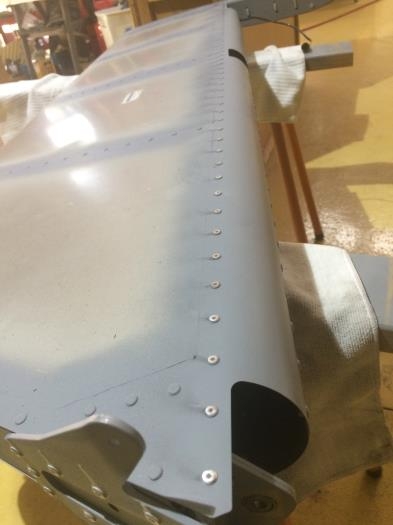 Prepare and prime rudder rivets.