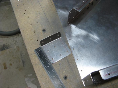 To line up the Vertical Stabilizer frame to match the pre-drilled pilot holes in the skin, the Forward Spar turned out to be about 1/4" too short. This caused the Tip Rib to slant downward and the rivet holes ended up going into the bend.