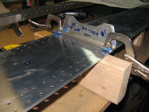 Using Main Spar Web pilot holes as guide, drilled #40 holes in W11-012R, W11-08R and W11-09R. Then, deburred them.