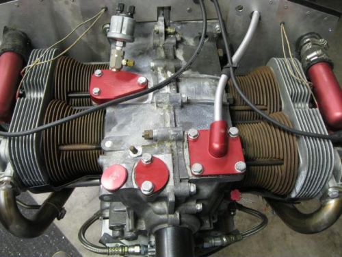 I mounted the Aerovee on an engine stand. I removed some of the baffle material to get to the spark plugs. Also removed the intake hoses.