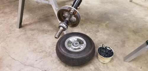 Removed the wheels and brake shoes. Rounded the brake cams. Drilled and tapped the brake plate to accept the wheel pants. Greased the cams and wheel bearings and re-assembeled the brakes. Installed the wheels. Getting the measurements just right required installing and removing the wheels several times.