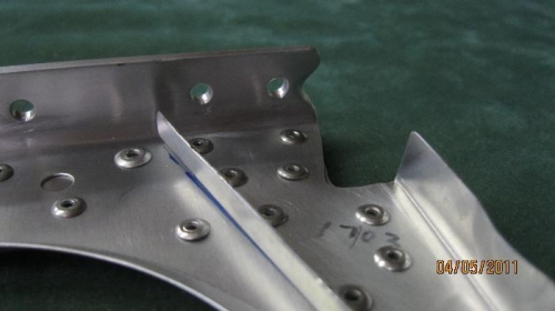Previously determined that the Root Rib Attach Angle supplied with the Optional Machined Parts had not been preformed to the required 86 degrees. The angle was 89 degrees. I removed the Fwd Root Rib Attach Angle and drilled out rivets.