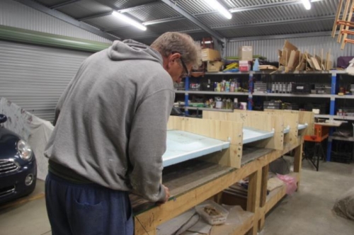 Assembled Wing jigs around the left Wing and hot glued with blocks to the lower surface.