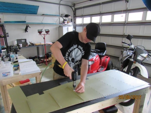 Dimpling and riveting. Impressions thus far, some of the rivets are a little out of proper length. Ended up having to drill out a couple due to bending (Van's sent the wrong rivets, no 4-5s, mislabeled the 4-6s). Back riveting went well. 7-6 step 11, 7-7 step 5 (w/Sean), 7-8 step 1-3, 7-9 step 1-6,8.