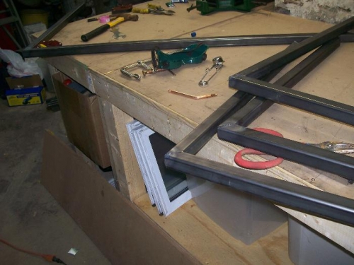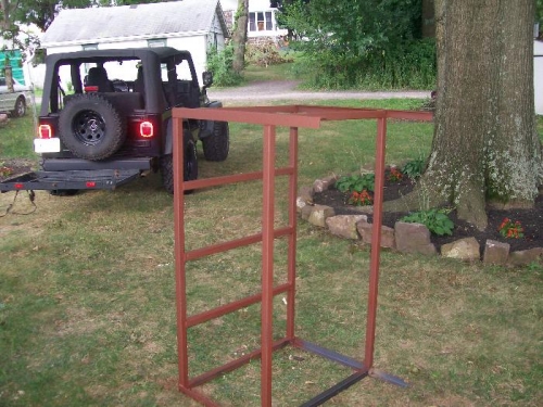 Gas welded the mitered corners for the Smithy stand (top and bottom shelf) Took the rest to the steel to my cousins shop because he has an arc welder (and is a better welder than I am) The Smithy will weigh about 500 lbs., so this stand needs to be strong !
