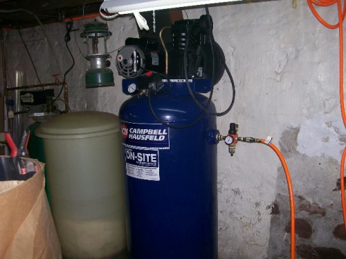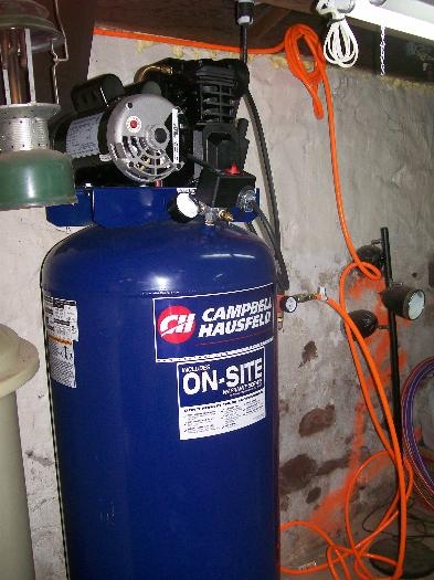 Finally picked up the compressor with Todd, tonight. I probably could have fit it into the Jeep, but there was no way that I was getting it into the house all by myself. It is HUGE, and a bit overkill but will power just about any pneumatic tool that I want to hook up to it. It should outlast this adventure and beyond.