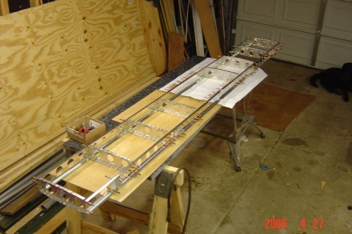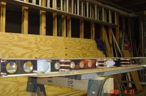 Deburred the rib holes and edges, straightened to ribs using fluting pliers. Clecoed all but the inner two ribs in place. Clecoed the hinge brackets on the outside of the rear spar in place. There is much more deburring to do but it's time to go to bed. Have to go to work tomorrow.
