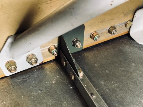 These are detailed in the plans and you must make them. They provide additional stiffness to the forward floor/spar attachment. Clamped the blank in place and backdrilled through spar using a handmade #30 bushing to protect the actual spar hole. I centered a starter hole in the F699 then removed it and opened it up to AN3. Attached it to the spar then used 2 AN3-3A bolts to fill the holes I drilled with the angle drill through the sides. Depending on the spar hole location, you may have to add a spacer between the floor stiffener and the F699 to get proper edge distance where you attach it to the spar.