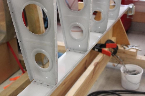 Next task will be mounting the bell crank and opening a hole in the rear spar for a control rod to pass through. Then I will begin riveting on the skins and leading edge.