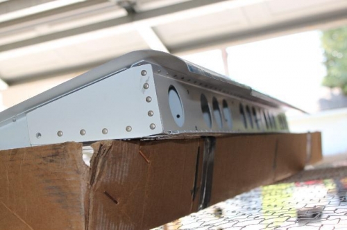 The assembly and riveting of the flap went without hitch. When completed, I fit it onto the wing and it was the perfect match that I was looking for with that aileron so its DONE. I split the hinges on this 2nd set of flaps as well and put a nutplate in each flap spar to hold the two hinge pin halves with the little double eye hinge pin retainers I made.
