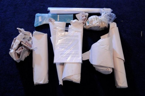 Drove to FEDEX drop-off location to get boxes. Began inventory and storage process. Started with the smaller box.