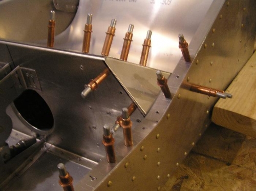 Layout cut and bend the gussets 7F11-7 for both sides. This took 3 tries to get it right on the passenger side, but once I caught onto the bending process, the pilot side was done in one try. Driil and attach 7F16-1A gusset to tunnel.