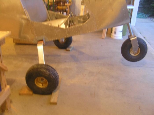 Well, she's on her wheels at last. Assembled the brakes/axles on the wheels and set her on the ground. A great milestone!