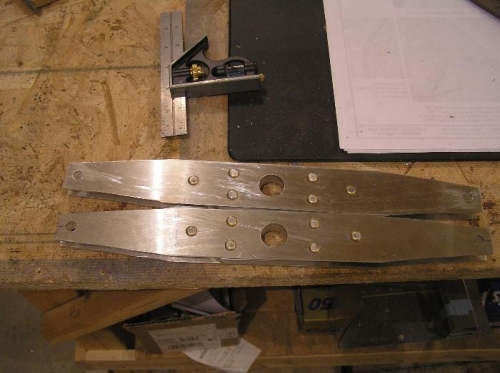 I got both of the bell cranks riveted and the 3/4" holes drilled. You have to be very careful with these big holes not to get them oversize.