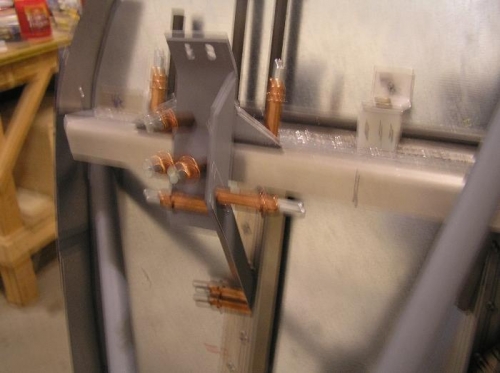 Cut and drill 7E5-3 throttle stop. Bend and drill 1/4" holes for cables. Cut "L" angle brace. Drill, prime, and cleco in place. Drill choke stop and cleco.