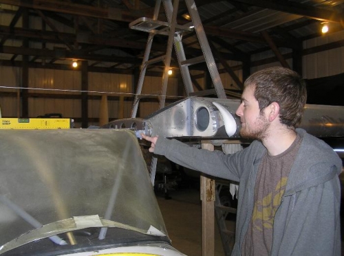 Got help from Granson Jon and Wife Patti aligning the wings and securing them to fuselage.