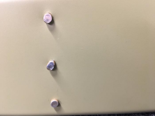 The tip rib went on with no problems, but not so for the VS-707 rib. Somehow I managed to clench one rivet badly and crack another. I'm pretty sure is was caused by not holding the set perpendicular to the rivet.