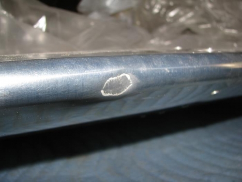 Pg. 09-08 Fig. 2: While removing the Stabilator, I noted a dent in the leading edge of HS-1201R Man Skin. It measures 5/8" x 3/8" x 1/16". There were no cracks. I don't know how or when it happened as it was covered to keep it clean. Van's Support recommended replacing the Main Skin.