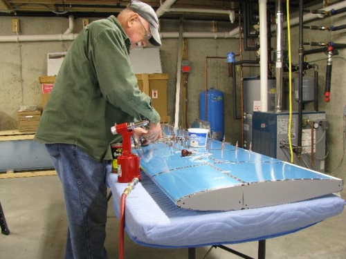 Step 1: Marked Left and right skins. Step 2: Clecoed hinges inside Main Skins. Step 3: Match-drilled The #30 holes in the hinges at the masking tape locations and at the inboard ends. Removede the hinges for deburring. Step 4: Clecoed the Main Skins to the Stabilator Skeleton. Step 5: Riveted the Main Skins to the Stabilator Sleleton Assy. Step 6: Riveted the remaining holes on the Skeleton.