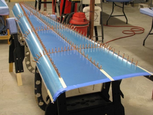 Step 1: Hooked and clecoed the Lower Left and Right Skins to the frames.