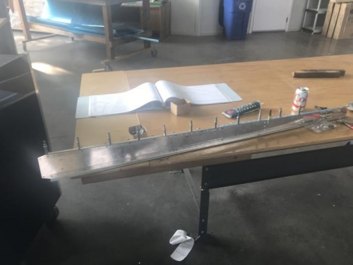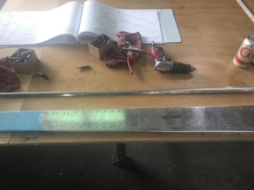 Cleco'd deburred parts back together. Began step 3, mabtch drilling #40 holes on VS-1014R and L and Spar Flange. Deburred all drilled holes.