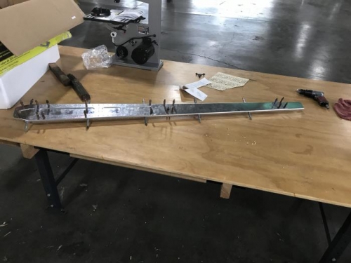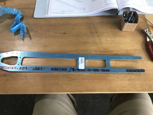 Deburred VS-1008, then cleco'd it into place on the spar. Then got the VS hinges together and clecod them into place. This was sligthly problematic because of the powdercoating/paint on them. Had to clean out the holes with deburring tool so they would fit.