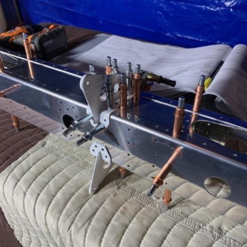 Completed riveting of stabilator spar including control horns. TT RV12iS 29 hrs.