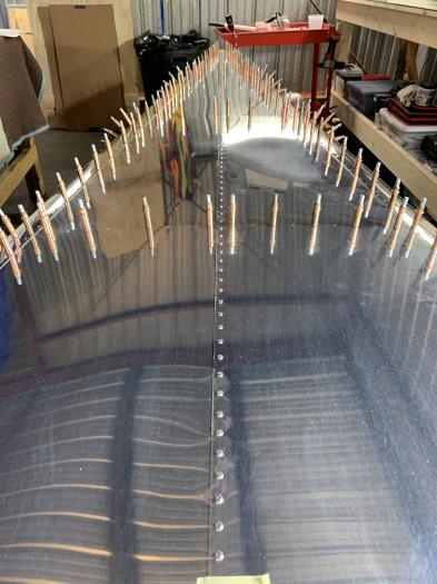 Attached lower tail cone skins to bulkheads.
