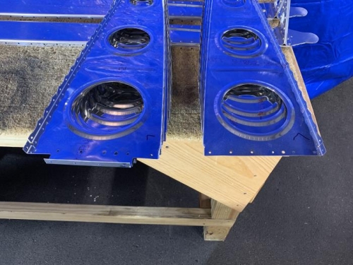 Completed rear spar assembly riveting spar doubler and inboard flaperon hinge. Continued rib modifications per KAI. The number of ribs appears to have grown overnight.
