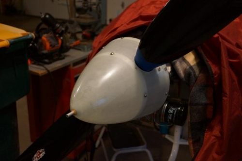 Reassembled spinner and prop. Confirmed alignment off with 1/8 inch woble. Looks good, though...