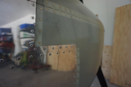 Wheel fairings removed, masked and filler placed on low spots between front and rear components. Cowl removed and engine checked for leaks or potential areas for vibration induced wear. Cowl checked for final fit and reinstalled.
