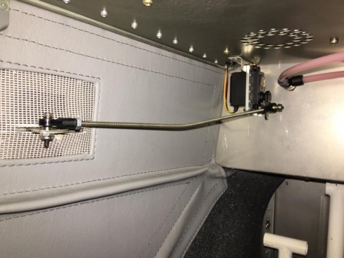 Electirc vent controls added. Built using 2 R/C servos driving vent covers. Servo control board and voltage converter (12v to 6v) installed in avionics bay. Servos activated via left and right 5k potentiometers mounted in panel.