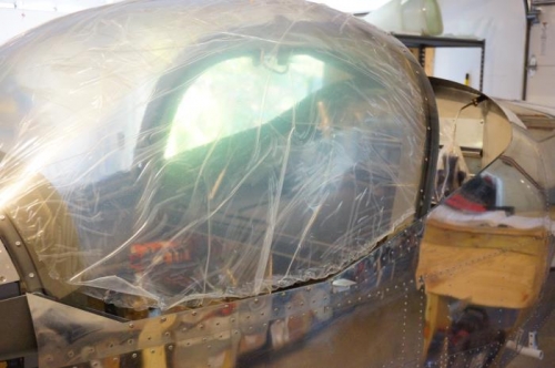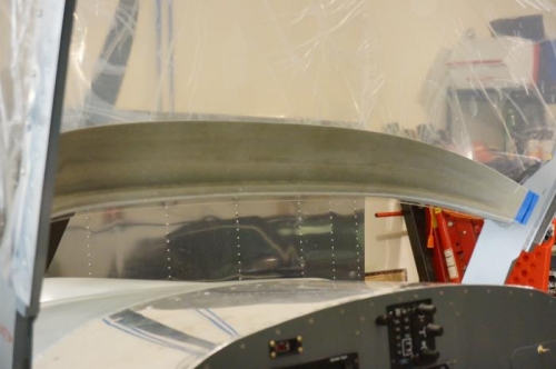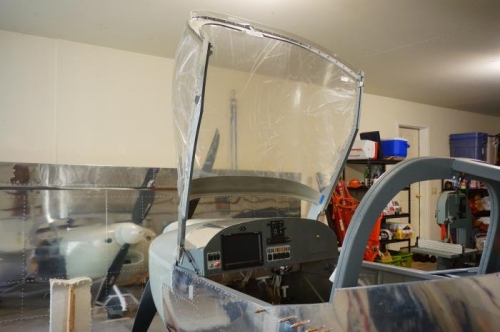 Mounted canopy to frame. Riveted canopy skirts and attached to fuselage. Nice to have this very expensive piece of plexiglass somewhere safe! Trial fit of glare shield