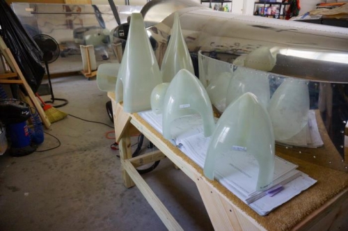 Sanded, primed, painted and installed vertical stabilizer and rudder fairings. Sanded, primed and painted canopy fairing. Will need to be resanded and repainted as waviness apparent in fiberglass. Cut all wheel fairings to scribe lines