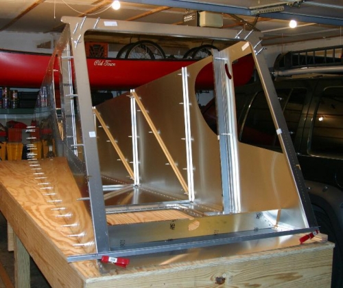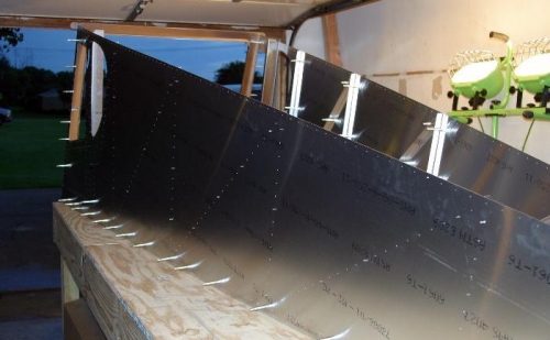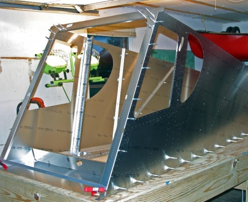 Work continued on the rear fuselage. Both rear fuselage sides were fitted to the lower skin and clecoed to the lower longerons.