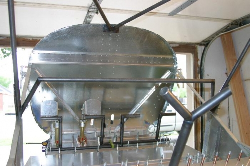 Fitted and clecoed the steel tubular cabin framework in place. Began to fit and cleco the firewall to the forward fuselage. Total construction time now at 174 hours.