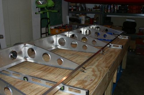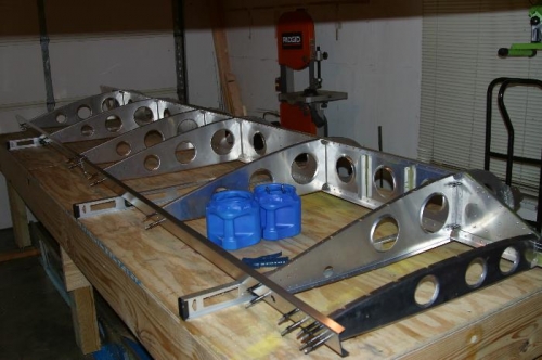 Disassembled left wing skeleton, deburred, cleaned and reassembled. Skeleton ready to rivet.