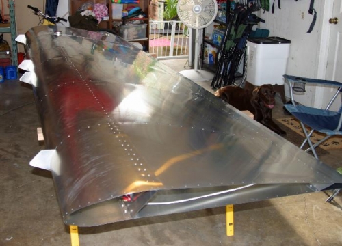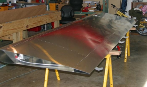 Finished riveting the wing top skin and leading edge.