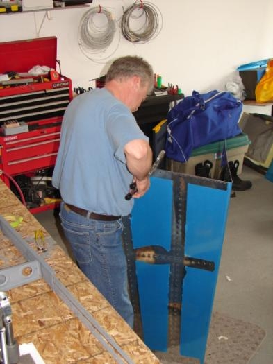 okay,,,, finished assembling, declecoing cleaning, deburring. the right side of the HS.... Dimpled the rightside skin. Primed the right side skeleton and reassembled.Riveted the right side of the rear spar together and the front spar. Showed Steve how to rivet and dimple using the hand squeezer and the DRDT-2 (he's gonna love this). He's pretty good.. then again anything I've taught him he's good at