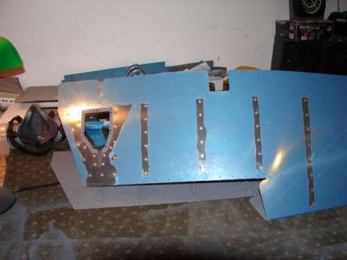 finsihed priming right side stiffners. reassembled and taped rivets to skin. sorted stiffners, installed and back riveted stiffners for both elevators. Installed and back riveted the trim motor re-ineforcemtn.