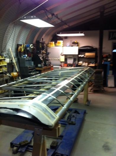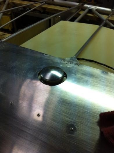 Smoothed out the rough edges, lightly sanded the bare metal, and taped over the rivets today. Hopefully I will get the right wing covered this weekend.