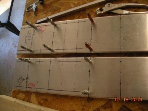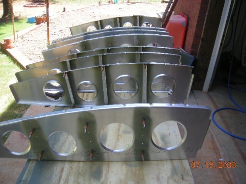 Drilled and cut rear channel. Drilled and added L angles to ribs 1-4 left & right. deburred and corrosion protected. Riveted L anles to Ribs 1-4 left & right.