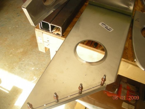 Installed right wing rib tip with "L" angle along the 45 degree edge to the right wing spar.