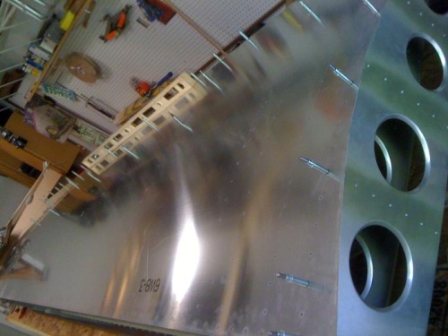 carefully leveled front & rear spar (channel), positioned skin in place and started drilling.